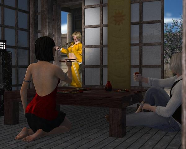 Here's the final raw render, followed by the final postworked version (I made some minor--I thought--lighting changes prior to the final render, and one was not an improvement, so I fixed it in post by pasting in a small section of the previous render).