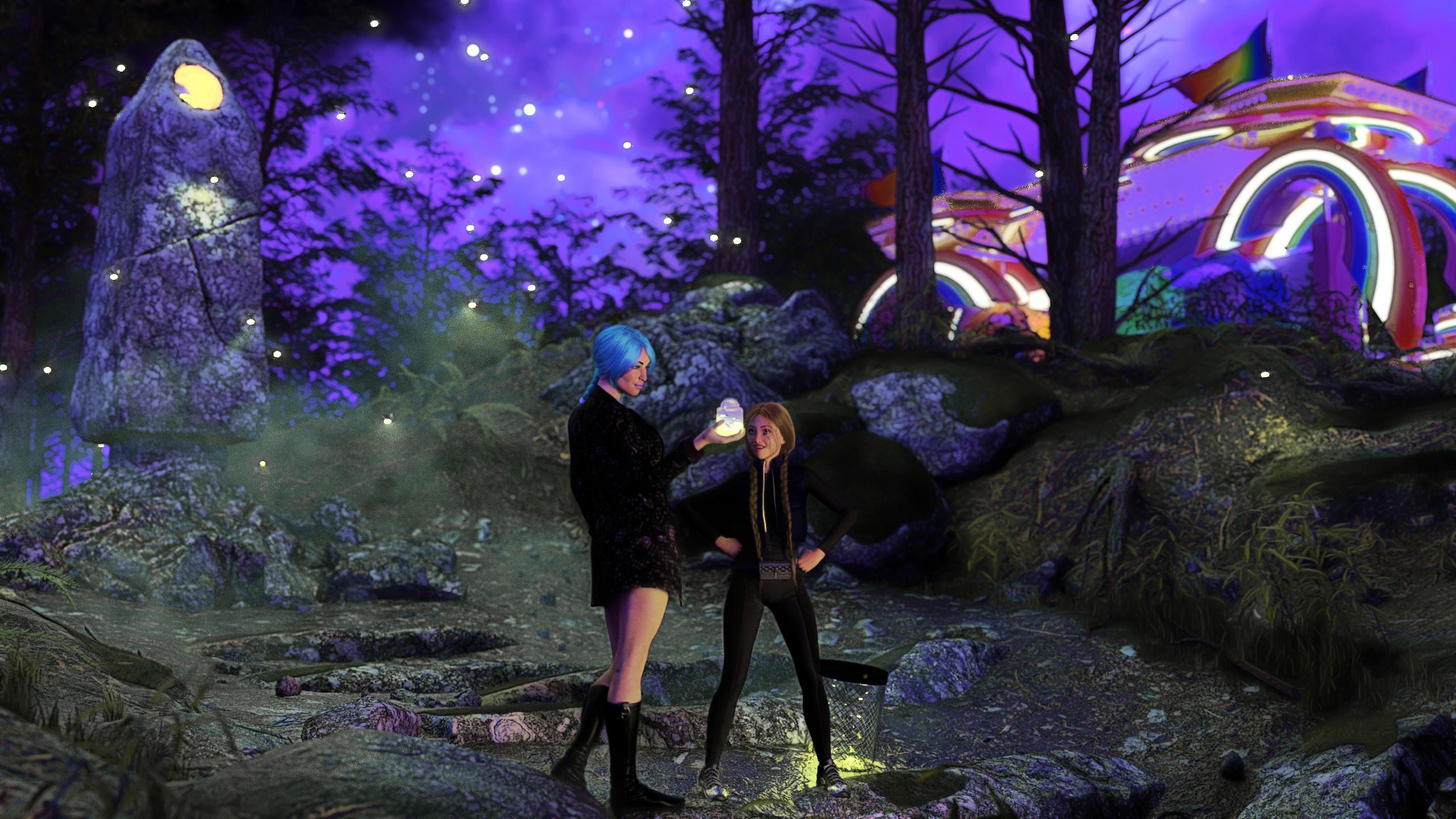 They gathered enogh of the yellow lightning bugs to light their float for the upcoming parade. But of course, they still needed to find the blue and red ones - presumably at monoliths with blue or red glowing holes at the top... Maybe they could change the color of the monolith to get different bugs? That's how it is in every other adventure game, right?