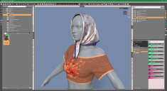 In real life it is just a square about a meter/yard in size, folded on the diagonal and then placed on the fold at the forehead and then knotted under the chin. I could see dForce being used to get it to drape. But it is the knot that would be the iffy part.