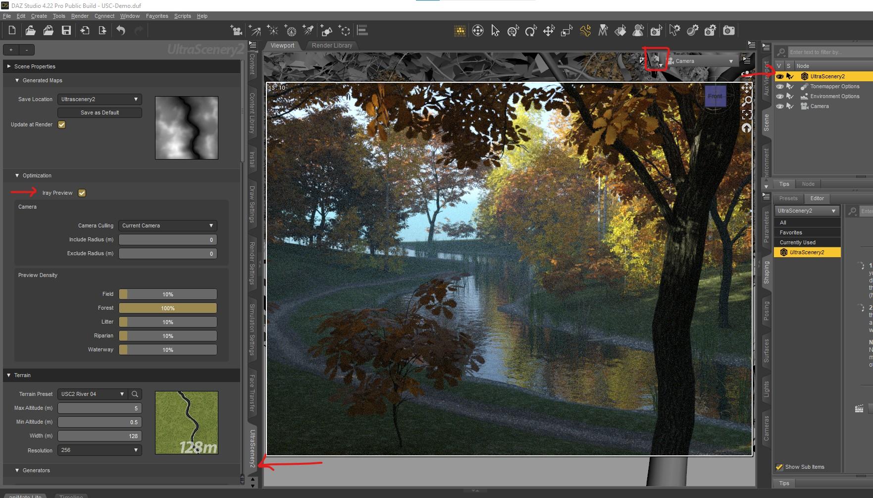 When it comes to viewing Sun-Sky settings with NVIDIA Iray, Ultrascenery 2 does it differently than classic Ultrascenery and appears to have a troublesome quirk in this regard. For assorted reasons, I hadn't done enough with USC2 yet to have really paid attention to this before.