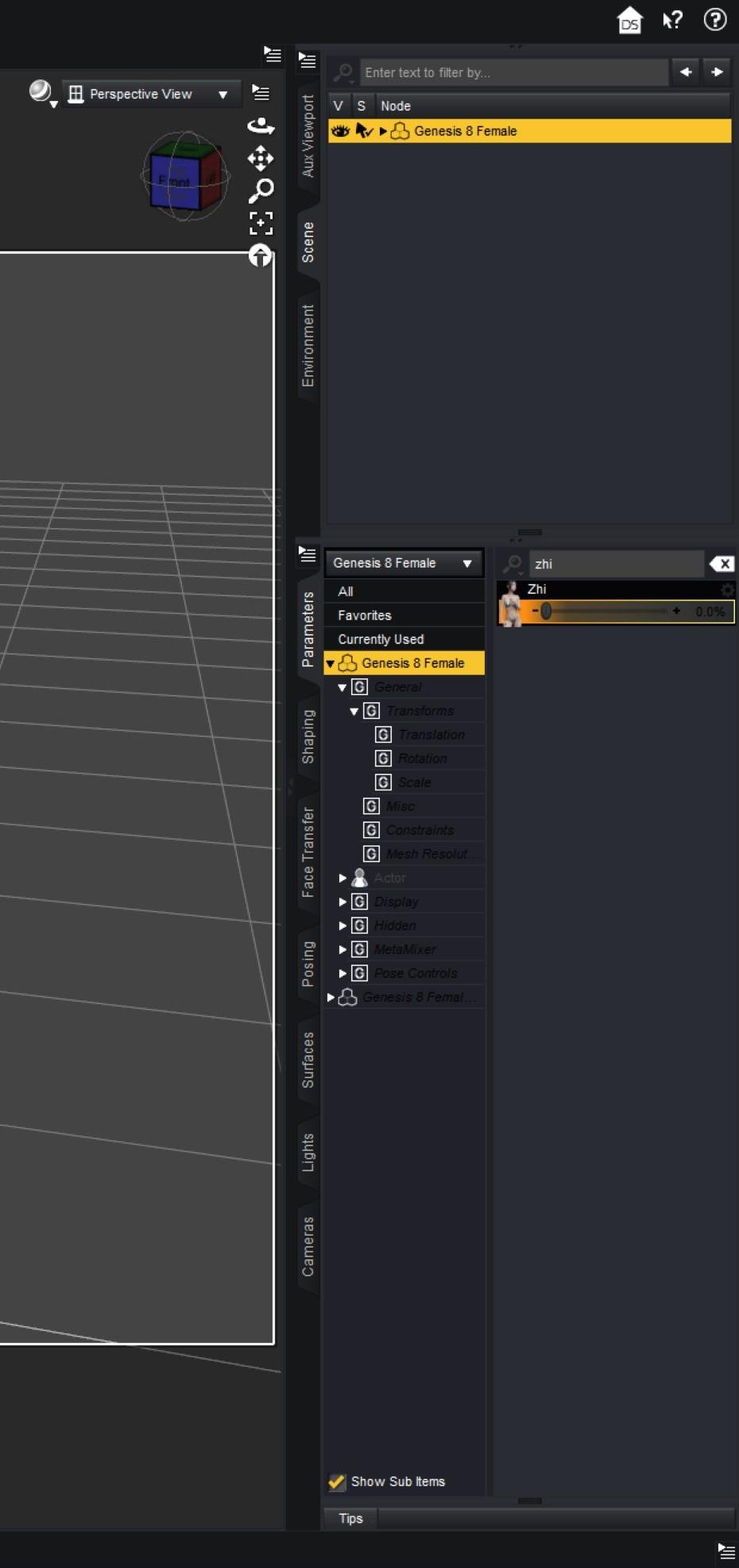 But for some reason only the one I bought from DAZ shows up in the bottom right menu (Parameters, Shaping etc).