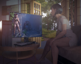 Another difficult issue is that of depth of field, I decided to put the focus on the image of the female figure on the monitor, the image was a rendering of another scene, I decided to render the screen separately alone with a totally white HDRI and then compose it on top of the screen rendering with emissive surface properties, The emissive surface generates variations in the rendered image of the original according to the intensity of color, luminescence and I thought it made the image a little blurrier. The problem is that I don't know very well yet how to render the image of the screen in white HDRI so that the image is as sharp as possible, I tried with the value of 1 in the pixel I filtered and the image was quite sharp but the edges of the colors with the pixels very marked almost without blurring, but at normal size without enlargement it looked good enough. Perhaps there is a way to calculate the resolution of the texture map based on the render size and the space it occupies in the image and achieve the most appropriate sharpness.