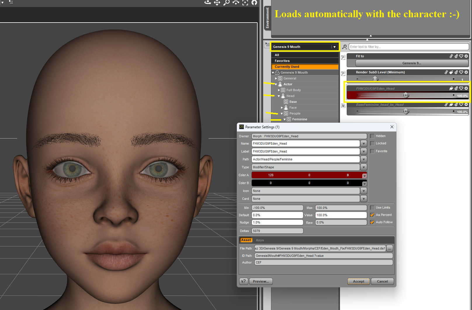 This is the same morph EXCEPT it now WILL automatically dial in with Eden's character :-)