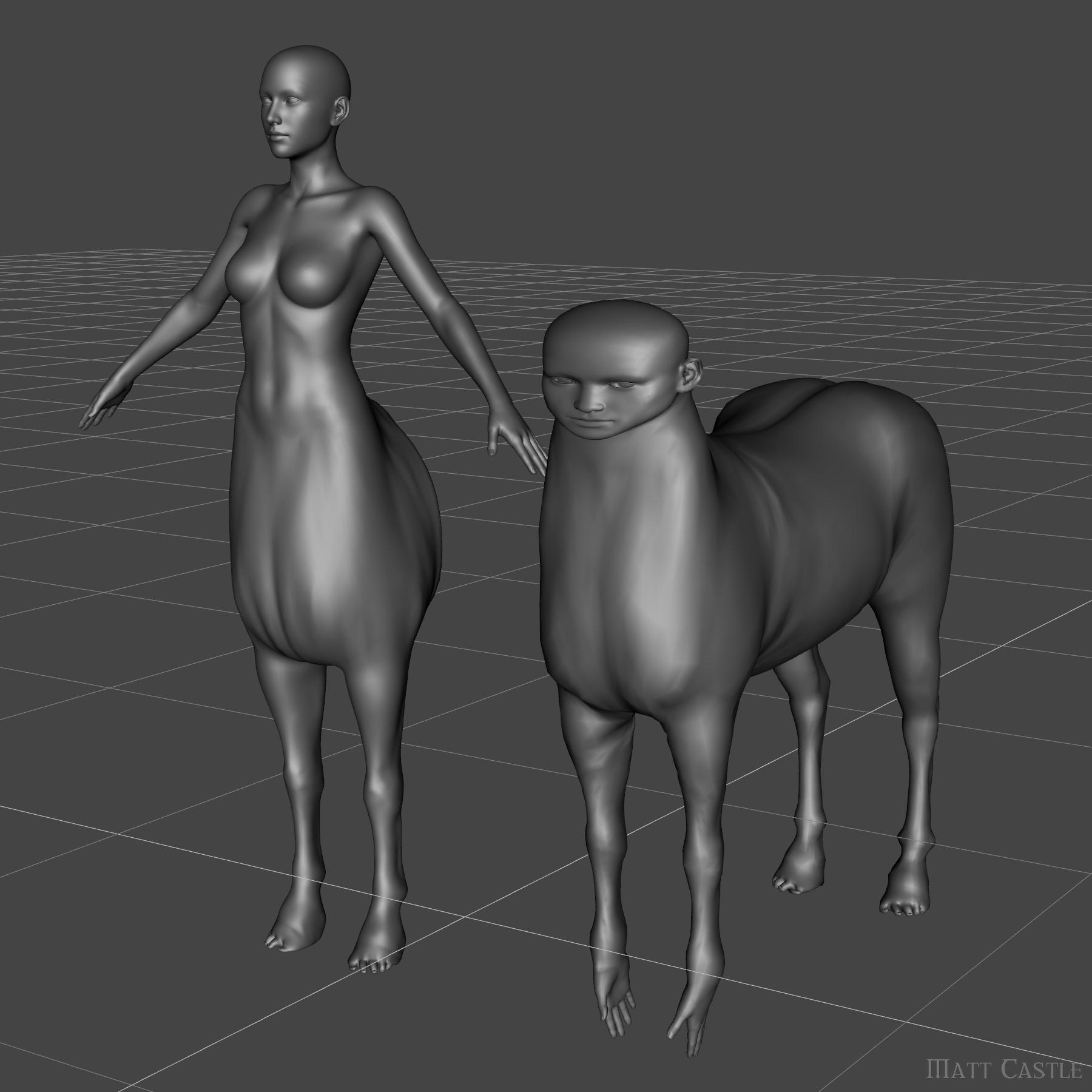 I have Genesis figures posed/morphed to match the shape of the centaur body (a process requiring reasonable skill in Blender), which I can use to get the majority of the shaping done:
