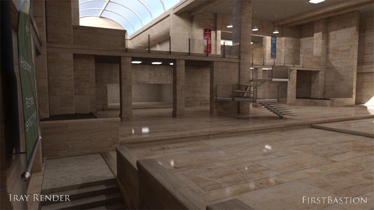 Just finished an Iray update for the Gallerie Bastion set.  I'll be uploading the files to Daz tomorrow,  how fast it goes through QA is anyone's guess,  but it's done, looks alright, and will be a free update in your accounts when ready.   I also closed off that one empty wall in the back corner  and added some ceiling emitters to help balance out the light.  There's also a new 3Delight version included.