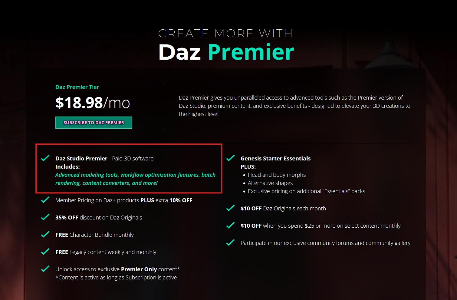 Have noticed that if you got the top tier sub you get a different version of Daz Studio in Daz Studio Premier. So looks like Daz have returned to the old tiered software system one free and one paid for with extra features. And the issue is that if your Premier sub expires so does your access to the Premier version of Daz Studio.