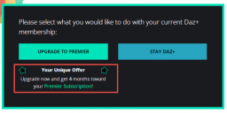 I've got daz+ until June 2025, and my 'offer' is for one month of daz premier.