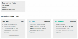 • I think the real value in Premier is the extra 10$ discount across the board AND tokens now start at $5 instead of $10 with Daz +.  With double the tokens (or spending half as much for the same amount) you can easily make up the extra $9.99 a month.  This tier is good for anyone who consistently spends and has an interest in additional features.  Plus, it's great to have in program tutorials, too.