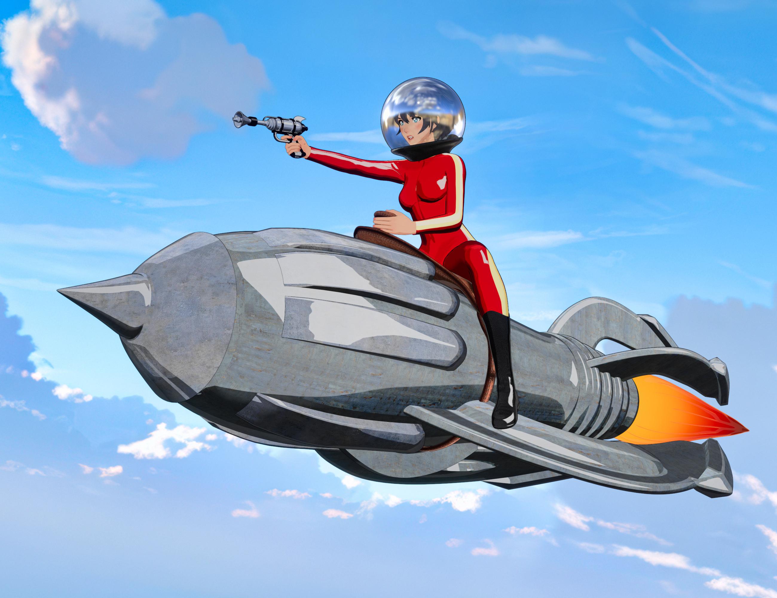 Great use of those products! I love retro sci-fi and purchased that rocket thing a long time ago, can't remember if it was here or old RDNA and I think I only used it once with V4. This looks great Filatooned!