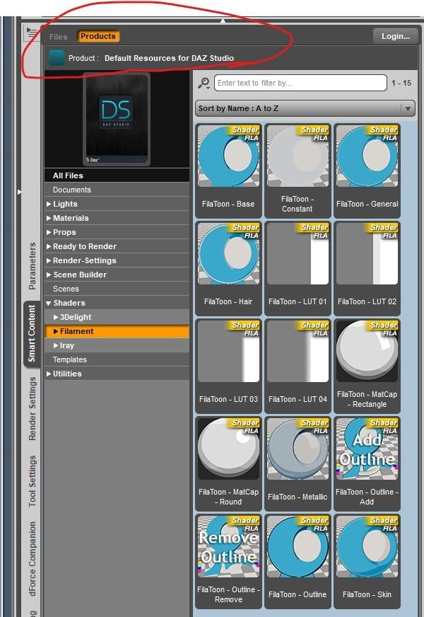 It's in general Daz shaders inventory shaders. Shaders>Filament>Toon.