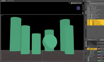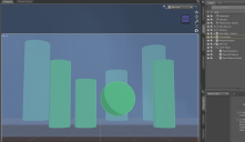 I'm guessing you mean the third option I mentioned? It's probably easy to show in a few images. I'm using the blue tinged planes for outdoor shots in this example, but you can have them white for a neutral approach or in a color that matches the scene, especially for indoor scenes. In the first image, I've got a sphere as my main subject in front of the camera, some cylinders at mid distance, and some more larger cylinders further back. They're all the same color.