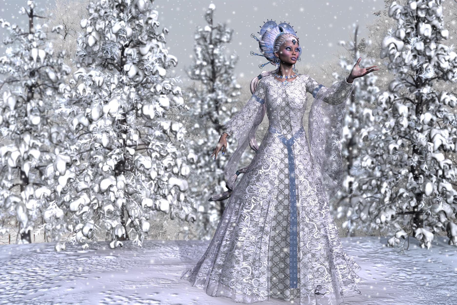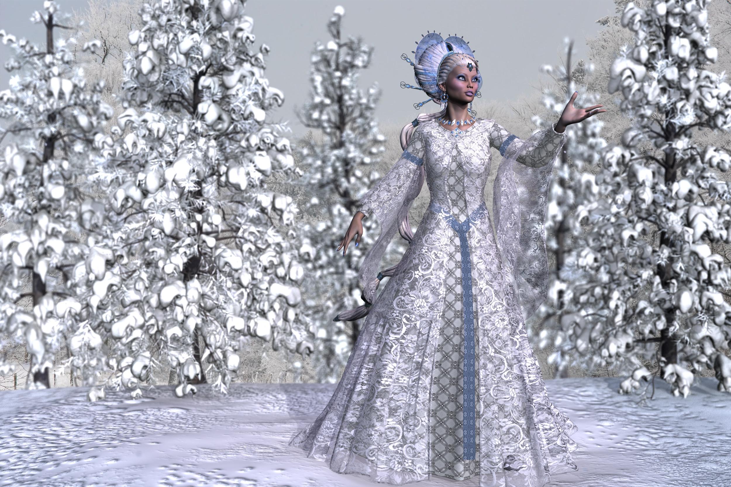 I've been playing around with my Photoshop brushes, so here's the Winter Queen with snow. Adds that nice final touch, doesn't it?