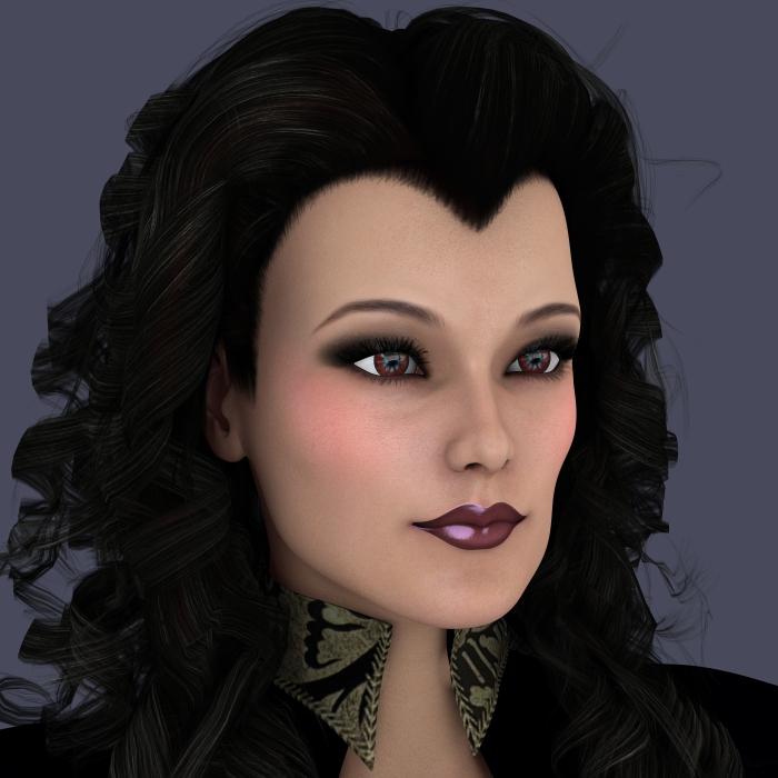 I know that Curly Hair for V4 is dated, but it's the only long hair with a widow's peak - this race has deep widow's peaks. Lyon Hair is the other one that has a widow's peak. I replaced the old painted texture with a merchant resource photo of real hair and that helped.