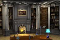 I have the room's lighting the way I want it. When I bring in the character, I will add lights to her specifically. The flame in the fireplace is pretty flat, so I will have to perk it up in Photoshop.