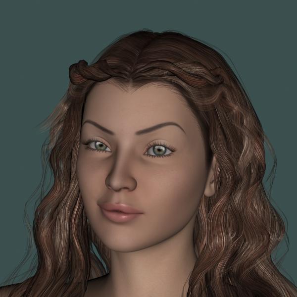 Expression: A neutral expression doesn't tell a story. Is she tired, resting, or bored? It looks as though she is looking into space. An attitude expression can give her some personality, even if the axe is at rest. Here's an example with the expression settings (for Genesis 2). The settings should work for Genesis 3. The important thing to remember is to make her eyes look at you, and thus she is engaged as though you are standing with her. Remember that realistic expressions are asymmetrical. You to a mirror and make expressions and you will see. While you're at it, take a few selfies to use as a guide. It doesn't matter if you are doing expressions for the opposite gender; the same rules apply.