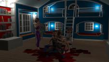Next iteration. Removed the heels. I changed her shorts because when i moved her leg to get her foot on the bed after heel removal they were bunching up on her leg weirdly. Added a ceiling plane to remove light spillage onto the wall. Also lightend up her shirt so it wasnt blending into the shadows. Also fixed her errant lock of hair