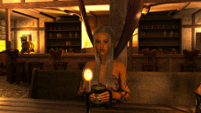 But if you DO need to change her skin color, add a mesh light with Color 220,220,255 + Temperature > 7500 as well as tweak reflectance tint on skin surface a bit ~~ Tweaking Tone Mapping will holistically change the tone in the scene, which may not be a good choice for this tavern scene...