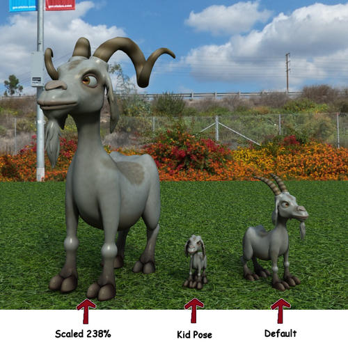 I could use some assistance, Im considering 3DU's Toon Goat to recreate my own version of 3 Billy Goats Gruff and i need to make 3 distinct goats. A Masculine/Muscular Male, a Middle-sized Male, and a child goat. The latter two dont seem that difficult, but im concerned with the 1st... the Masculine Male Goat; the biggest and meanest of the 3.