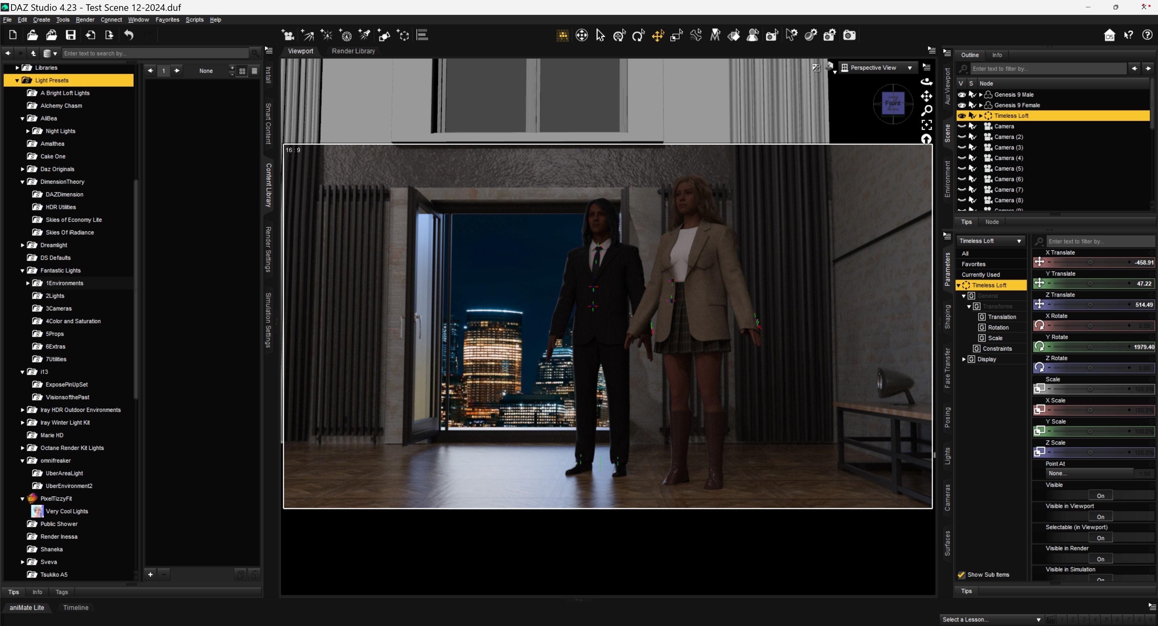 The file for the lights should be in the folder for the Timeless Loft. Just double clicking on it should turn on the lights in the scene. If not then go to the scene tab, select the lights, go to the surface tab, select the lights and scroll down to the Emissive slider and change the colour to white which will turn on the lights, it also opens the light settings which can be adjusted if needed. You might need to render the scene to see the lit scene properly as using the Iray option in the viewport sometimes doesn't show the lights in all their glory :)