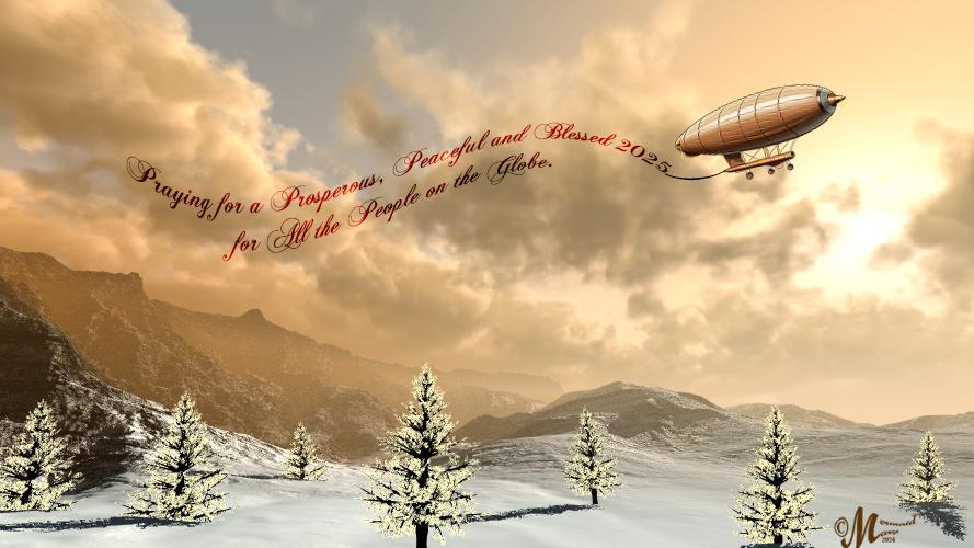 I used one of the scenes from David’s Cloudscape 4 for this scene and added the Special Hemlock trees which I have in my fav library based on David’s Snow on tree tutorial. After trying for many days in vain, I added the Blimp and text in Photoshop.