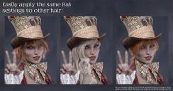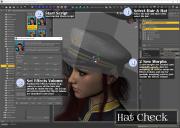 Quickly and easily create hair morphs to use your Genesis 3 Female or Genesis 3 Male hair with different hats and caps, even sunglasses and hairbands! Hat Check works by using a sphere, cylinder or cube to define an Effect Volume which you position over the hair. Any hair vertices inside (or outside depending on the options) the Effect Volume will then be pulled close to the head of the figure. Any hair vertex outside the Effect Volume, but within the feathering distance, will be pulled partially towards the head of the figure.