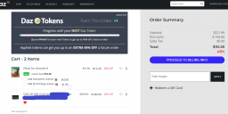 Don't feel bad. I've also grown accustomed to having GCs in my wishlist, just in case, and while I had one wishlisted and I've built a small cart with the required buy-ins, I'm not getting the extra 50% off for the gift card, meaning that gift cards were not supposed to be included in the sale from the beginning, most likely, and Daz has now fixed that. Still, would've been nice if Daz had included gift cards as items out of the sale in the fine print from the very beginning.
