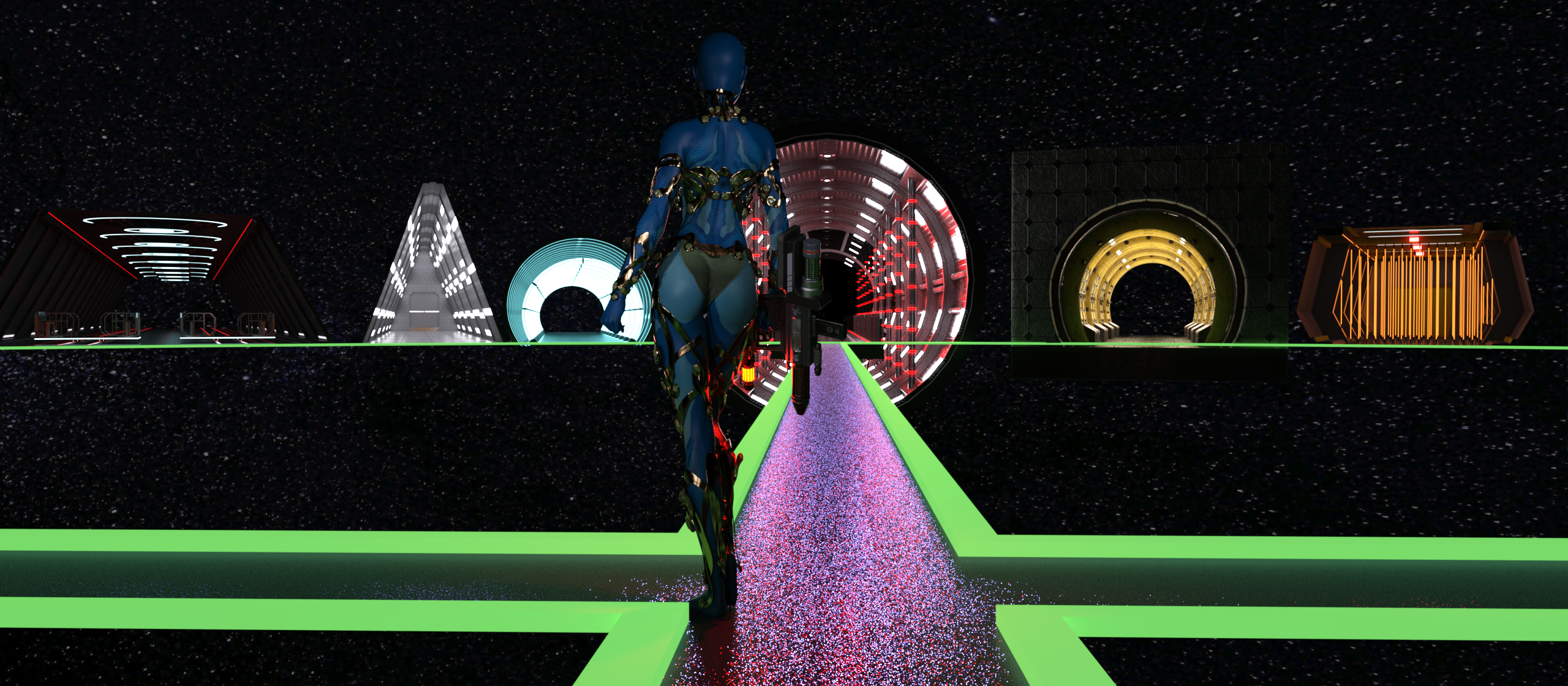 Hallway Tip: they work when you want a super-simple setting for PC & NPC portraits for RPGs. Well at least when the game genre is SF or cyberpunk. I haven't yet found any for fantasy. So if anyone can suggest any shader sets to change them from OD'd On Neon to Classic Dungeon or Elven Palace Corridor, I'd be grateful.