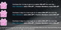 Assuming a 3 week (21 day) sale, that makes the buy-in for this sale 21 x $2 + $20 = $62 in the best case, plus tax, unless using gift cards or only charging up the punch cards sometimes. $62 just to play. Also, the sale pricing / floor pricing will surely take into account that many people will have gc + tokens + punch cards + Premier.