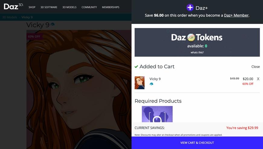 "Welcome Daz Premier Member You're Saving: $9.10"
