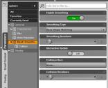 Smoothing is in the Parameters pane under the General section. Not all items load with smoothing, but it can be added. Another hint - be sure NOT to turn on Interactive Update. It will kill the responsiveness of your system.