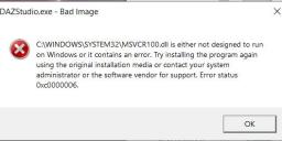 I was using DAZStudio 4.22 for a long time and everything was fine, but today I opened the computer and I couldn't open the program, this error appears to me