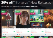 It says we get an extra 30% off when we buy 2 or more Bonanza New Releases, but in reality, the extra 30% off only applies to 2 items.