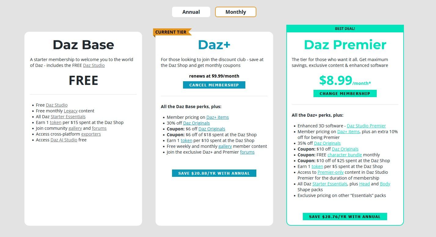 Daz is advertising Premier subscription for less than Daz+ subscription. Is this a March Madness sale or yet another advertising error?