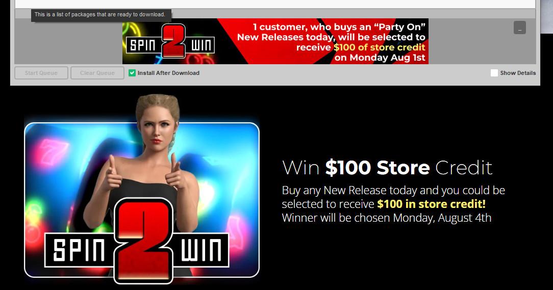 The banner ad within Install Manager (above) says you have to buy a "Party On" new release, and you might win $100 on August 1.
