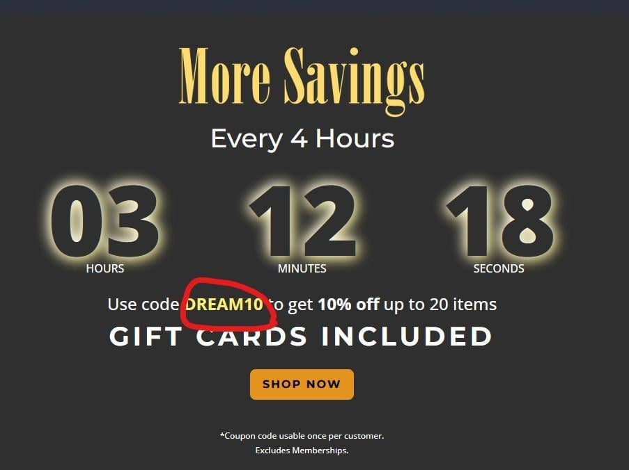 I don't know if it's the expected result, but the 'More Savings Every 4 Hours' section is showing the same exact DREAM10 code than before the refresh a couple of minutes ago.