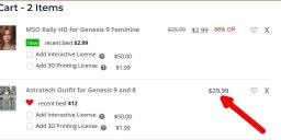 New Daz+ items don't seem to be bulk discounting if both are in the cart.