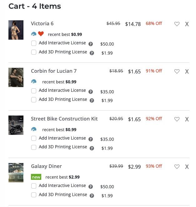 I checked without taking a screenshot by adding Olympia 6 to the cart (she was included in the outlet store until the recent refresh), and the 09_25PREMIER coupon was entirely applied to her, while the other three Daz Originals didn't see their price lowered.