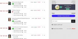 The left image is my cart without tokens applied showing the pre-token price. The right image shows my cart with tokens applied and the discount I should get with the additional 45% off.