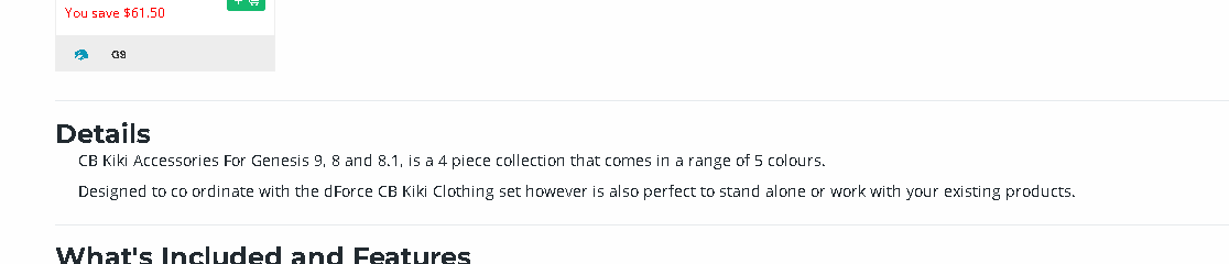 https://www.daz3d.com/cb-kiki-accessories-set-for-genesis-9 is advertised as for G9, G8, G8.1 and so I got it with my $6.00 Off Daz Originals coupon. Upon downloading and installing, there is no G8/G8.1 items in the zip file. Which is the mistake...a missing file or incorrect item page?