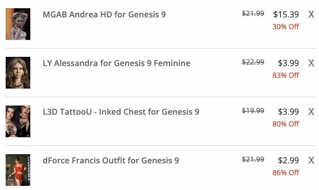 The CJ Pallas Fashionista Bundle and all items in it (like Rita Hollywood Curls for Genesis 9 and 8 Female) consistently gets no discount (except the one from Premier for DOs) even when they would otherwise qualify: i.e. in this sale it doesnt get reduced even though it is a DAZ original and when Neftis was featured Rita Hollywood Curls got no additional discount either. And it's not a matter of release date either: other DO items released around that time or even earlier get normal discounts.