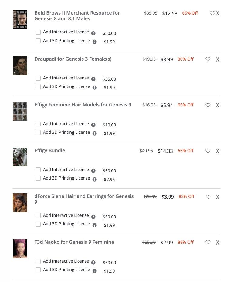 I guess there are DO products included. Very limited selection of those, though. Kooki99 is one my fav character artists - I own 75 out of their 91 products - so I was looking forward to their store sale to pick up characters I'd previously passed on. Maybe Kooki99 one of the artists bitten by the sales errors earlier in the month?