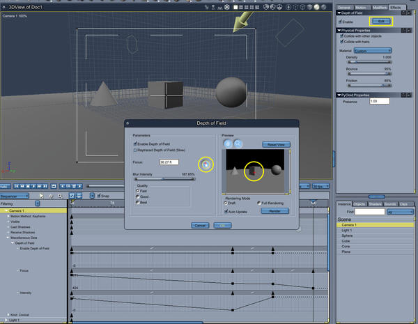 Which isn't a total loss, IMO, since the Carrara DOF is pretty sucky anyway. Of course you can do it in post if you have something like After Effects. But I don't think you can get what is effectively a camera with autofocus, or a guy with his hand on the focus ring of your lens like with real movie cameras.