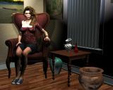 I am not totally happy with the lighting. I was hoping to get light from the ceiling light and window. I can't seem to make that happen for some reason. *shrugs* I have set-up a spotlight for her face everything was just too dark otherwise. A distant light near the window hoping for the sun from the window. A linear point light for the ceiling lamp just above. Oh, I did this render in 3delight. I like to throw things together just to experiment. Like changing textures, auto-fitting clothes to figures not made for them, etc. Lots of experimenting on my part so I can learn. I am still working on it, so it is really not finished yet. :D