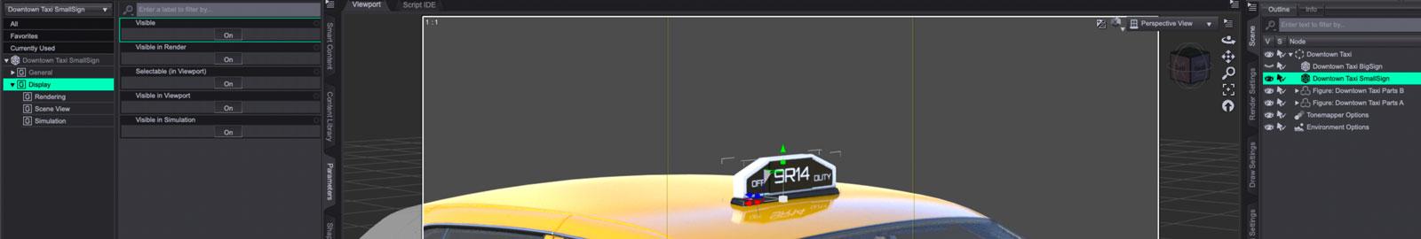 The product gives you the option to either load the taxi (with both large and small signs) as a group or as four individual props, of which 'small sign' is one. Either way, it will not show up on screen or render.