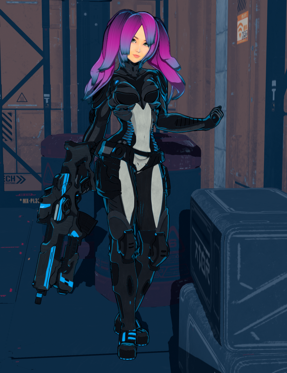 Genesis 3 Female with a mix of Aiko 7 and Aiko 6. Eclipse Sci-Fi Environment, StarSlayer outfit, Waterfall Tails hair.
