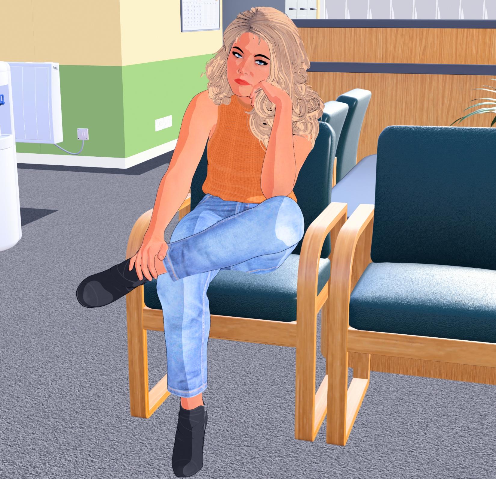 Chloe here is waiting to be seen by the Iray Doctor.  She's found herself stuck in the Filatoon World.  She doesn't mind it here, but she'd like to go home and she's been in the waiting room for an hour now.  She's not amused!