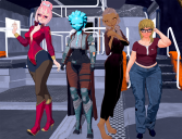Finished up the crew, from left to right: Leisl/Thorn - Quartermaster, Darati Gwn - Passenger, Quala - Captain, Emnarillionthalasa(Enma) - Navigator, Eleanor Asher - Engineer, Yurei Minako -  Medic.