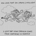 I'm doing a month long celebration of my honey's birthday month (July) and doing an illustration per day. His favorite is a tiger, so this is my tiger character as us. It's kind of a month long love letter. They're fun to do.