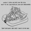 I'm doing a month long celebration of my honey's birthday month (July) and doing an illustration per day. His favorite is a tiger, so this is my tiger character as us. It's kind of a month long love letter.  They're fun to do.