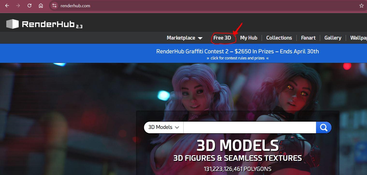 https://www.renderhub.com/free-3d-models gets you to the free models section and there are filters within it.